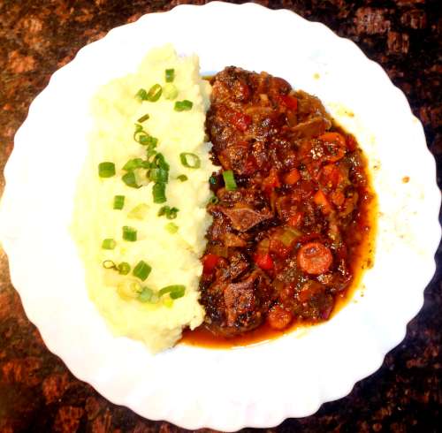 Краткое описание: Звенья хвостов обжариваются с двух сторон на оливковом масле, выкладываются в контейнер мультиварки, заливаются соусом (поджаренные лук, чеснок, стебель сельдерея, сладкий перец, помидоры, стебли зелени, красное вино, говяжий бульон, сухие травы и специи) и готовятся под давлением 1 час при минимальной температуре.