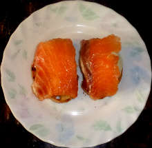 Очень необычное сочетание соленой (копченой) красной рыбы и мёда. Готовятся за 10 минут. Очень популярны в Барселоне (см. историю).