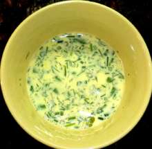 Соединить яйцо, молоко, зелень. Добавить соль и соду на кончике ножа.