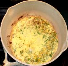 Взбить омлетную смесь.