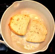Выложить ломтики хлеба в разогретую сковороду со сливочным маслом.