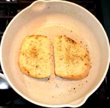Сковороду лучше брать черную или вообще гриль - на белой остались подпалины от карамелизованного хлеба.