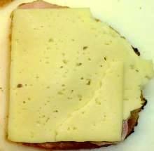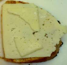 Два ломтика сыра нужны для того, чтобы склеить вместе все ингредиенты тоста.