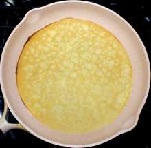 В Бретани блины кладутся на сухую сковороду, но я слегка её промаслил, чтобы блин не пригорел.