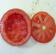 Тоньше стенки делать нельзя - помидор лопнет при запекании.Помидорную мякоть ни в коем случае не выбрасывать - её можно употребить в огромном количестве блюд вместо томата или заморозить до лучших времён.