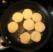 Как и при приготовлении оладьев, масла для жарки требуется много (слой примерно 3мм), но его остатки убираются, если готовые сырники перед подачей выкладываются на бумажную салфетку.