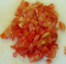 | Смесь специй, зелень сельдерея, пресный лаваш. | На лист пресного тонкого лаваша наносится слой фарша (баранина + помидоры + лук + чеснок + зелень + оливковое масло + специи). Лаваш запекается в духовке , нагретой до 200 С с включенным грилем 7 минут. |