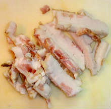 Бекон мелко нарезать.