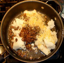 Как уже говорилось, можно использовать остатки вчерашнего обеда. Если готовите пюре специально - делайте его густым, т.е. не лейте много молока (или вообще не лейте)