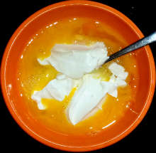 Вилкой перемешать сметану и яйца.
