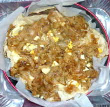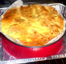 Залить пирог оставшейся яичной смесью.