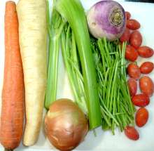 В оригинальном рецепте использовалась голова форели, но можно брать любую красную рыбу. У меня голова разрублена на части, но можно использовать и голову целиком. В оригинале бульон варится только с морковью и луком, но я всегда использую показанный выше набор овощей.