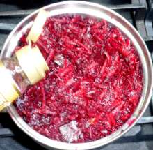 Уксус добавляется для сохранения цвета свеклы, но он же вносит оригинальную ноту во вкусовую палитру борща. Я обычно вместе с уксусом добавляю 1-2 ч.л. сахара для баланса вкусов.