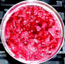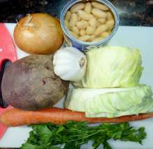 Свекла, капуста, помидоры, фасоль, уксус Варится бульон из головы лосося (или другой красной рыбы), процеживается. В кипящий бульон последовательно добавляются капуста, овощная зажарка (пассерованные морковь и лук, чеснок, помидоры, томатная паста, рыбный бульон), тушеная с добавлением уксуса свекла. Суп довариватеся до готовности капусты, снимается с огня и настаивается. При подаче в тарелки возвращаются кусочки головизны.