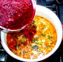 Поскольку в борще много ингредиентов, не всегда удается сходу добиться требуемой консистенции. Если борщ получился слишком густым (особенно на следующий день) его можно разбавить кипятком.