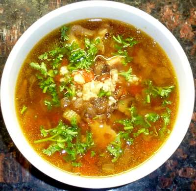 Ну, это конечно не похлёбка - "похлёбки" - это лёгкие овощные супы. Но это несоответствие никак не уменьшает достоинств этого блюда, 100 лет продержавшегося в меню московского ресторана "Славянский базар" (см. историю). Очень неожиданное и интересное сочетание рыбы и грибов. Варится этот суп по технологии ухи, но существенно отличается ингредиентами. Попробуйте - не пожалеете.