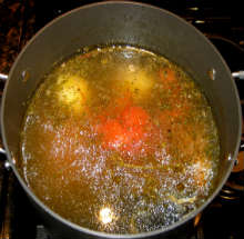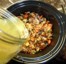 Залить ингредиенты бульоном.