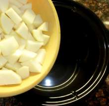 Выложить картофель в горшок медленноварки.