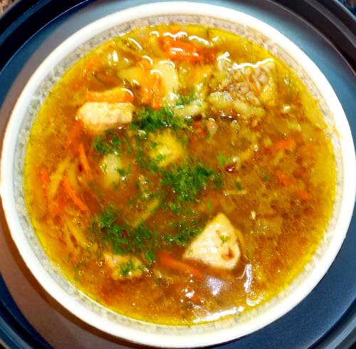 Рыбный рассольник с гречкой