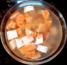 В таком рассольнике очень удобно использовать обрезки красной рыбы, например, брюшки. Я сохраняю обрезки в морозильнике и достаю по мере надобности.