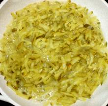 Натереть огурцы на крупной тёрке.