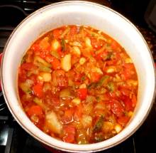 Если у вас сухая фасоль – её нужно замочить на ночь, затем отварить до полуготовности 30-40 минут и выложить в суп перед овощной зажаркой.