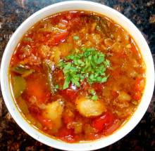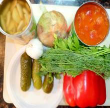 В современные рецепты этой солянки добавляется куча ингредиентов, с солянкой никак не связанных – грецкие орехи, аджика, заправка для рассольника и т.п., но я представляю ниже старинный рецепт. Нужно сказать, что по сути солянкой этот суп не является, несмотря на укоренившееся название – солянка без копченостей, маслин, каперсов называется «рассольником», но - что сложилось, то сложилось.