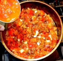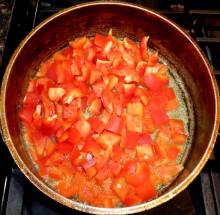 Жарить, постоянно помешивая, чтобы перец не пригорел.