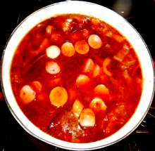 Классический русский борщ, но с региональными особенностями. Вкус этого борща интенсифицируется за счет добавления необычных мясных ингредиентов - копченостей и сосисок.