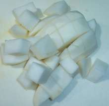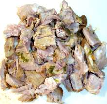 Остывшее мясо освободить от костей, нарезать небольшими кубиками.