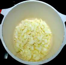 Разогреть толстостенную кастрюлю, налить растительного масла.