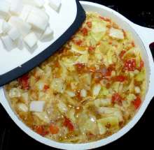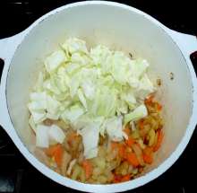 Добавить капусту к овощам, прогреть несколько минут, чтобы она размягчилась.