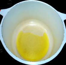 Разогреть толстостенную кастрюлю, налить растительного масла.