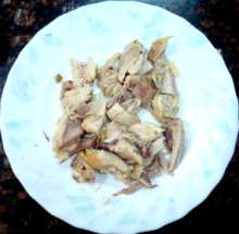 Остывшее мясо снять с костей, нарезать небольшими кубиками, вернуть в кастрюлю.