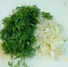 Чеснок и укроп мелко порубить.