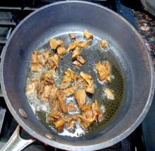 Выложить грибы в разогретую сковороду с растительным маслом.