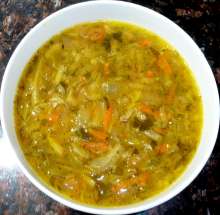 Этот суп – необычная, редко сегодня встречающаяся комбинация кислых щей и рассольника, дающая потрясающий эффект, а жареная курица вносит интересную нотку в богатую кулинарную палитру этого блюда. Немаловажно, что этот рецепт – отличный способ утилизации остатков жареной курицы.