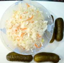 Подготовить квашеную капусту и солёные огурцы.
