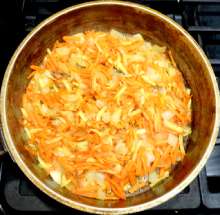 Когда лук станет прозрачным – добавить морковь и петрушку. .