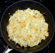 Выложить отжатую капусту в нагретую сковороду со сливочным маслом.
