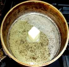 Выложить отжатую капусту в нагретую сковороду со сливочным маслом.