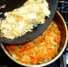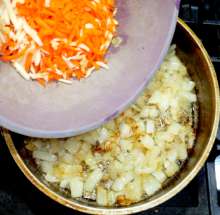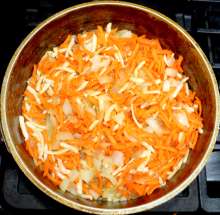 Когда лук станет прозрачным – добавить морковь и петрушку. .