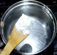 Тем временем в сотейник выложить муку.