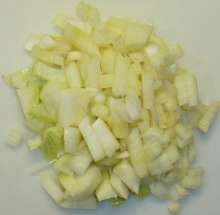 Лук нарезать мелким кубиком.