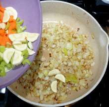 Подготовить овощи для зажарки.