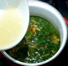 По стандарту в суп добавляется половина шпината и половина щавеля, но в последующих рецептах щавель исчез. Тем не менее, если у вас есть щавель - используйте его либо вместе со шпинатом, либо только его.