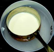 Смешать, льезон, нагревать на водяной бане до загустения.