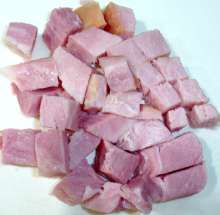 Ветчину нарезать кубиками.