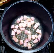 Выложить ветчину в кастрюлю.