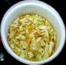 Добавить капусту в кастрюлю, варить почти до готовности картофеля.
